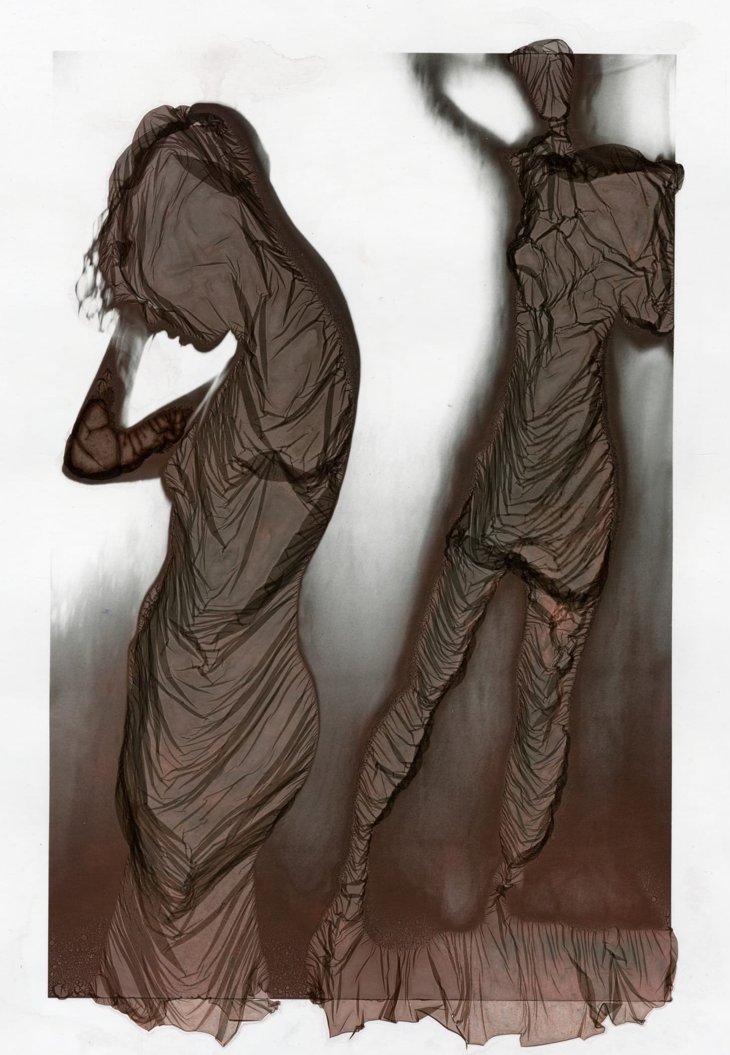 I suspect the first time I saw the veils of emulsion floating, I was captivated. It was about print #5 in a workshop with Jean-Pierre Sudre in Provence 35 years ago. Since I often draped my figure models in veils of real fabric, it was a natural curiosity for me to explore with mordançage, though no one had done that before. Don't we all love a challenge? Challenges can be painful until perfected, but what a gift when you work it out. That is the challenge...to stick with something, don't get too distracted, be willing to explore mistakes, make more mistakes, and ask questions...of yourself and others.