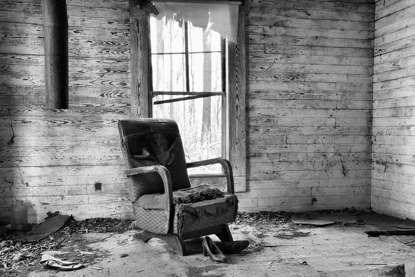 Shooting abandoned places brings a whole new atmosphere to the images. The eerie mood of these forlorn places transmits through the lens. These locations are -- by their very nature -- a little spooky. As an introverted person, I enjoy the isolation and loneliness of these places. I like the silence, although I’m often started by buzzards flying out of an open window or through a hole in the roof. Pieces of bent metal sometimes squeak or rattle as they shift in the breeze. Occasionally I can almost feel the presence of the people who once occupied the spaces.