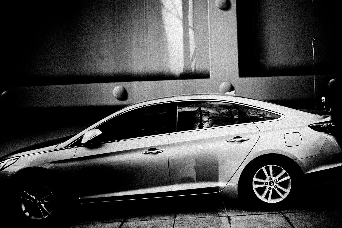 I took this photograph earlier this year in Seoul, South Korea. A simple street scene, nothing dramatic: a parked car, a blank wall, a few scattered shadows. Yet when I looked at it later, something struck me. All these unrelated elements had arranged themselves into an almost deliberate composition. The curved roofline, the scattered circles on the wall, the long vertical shadow of a tree… none of it planned, yet all of it strangely aligned.
